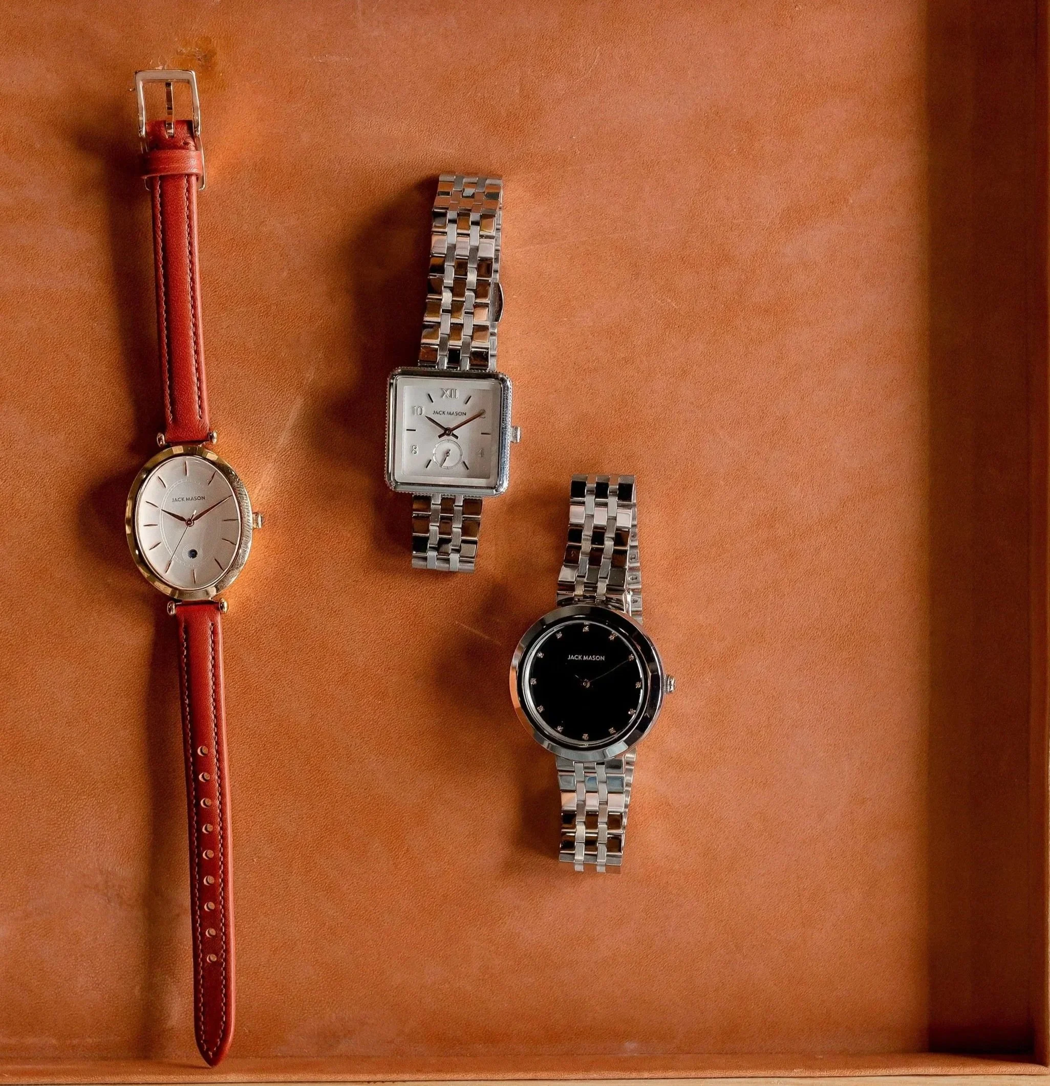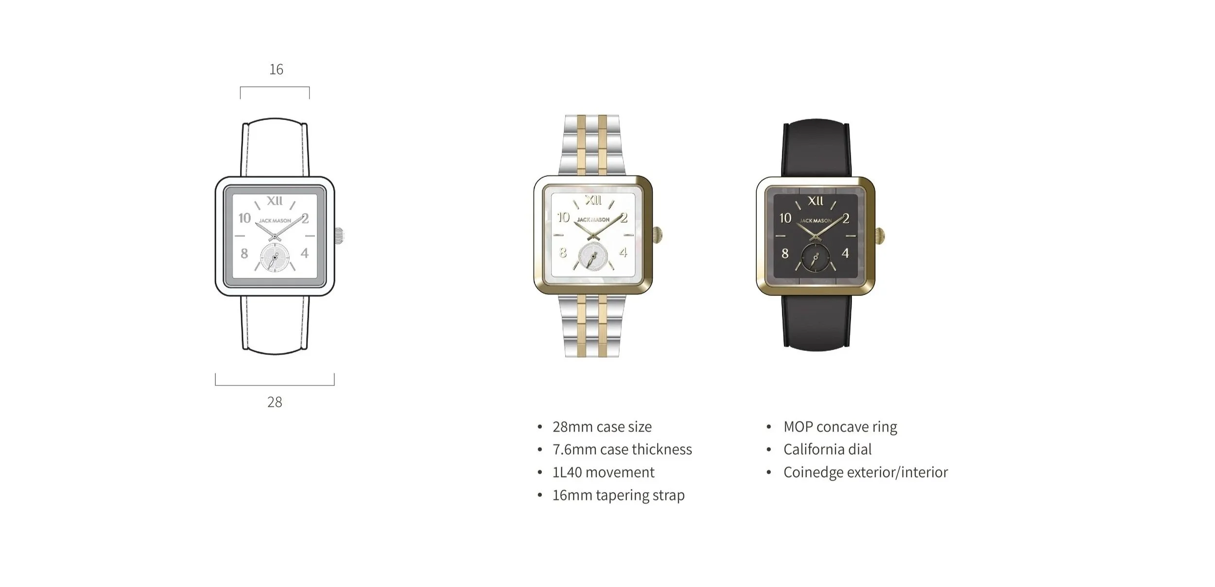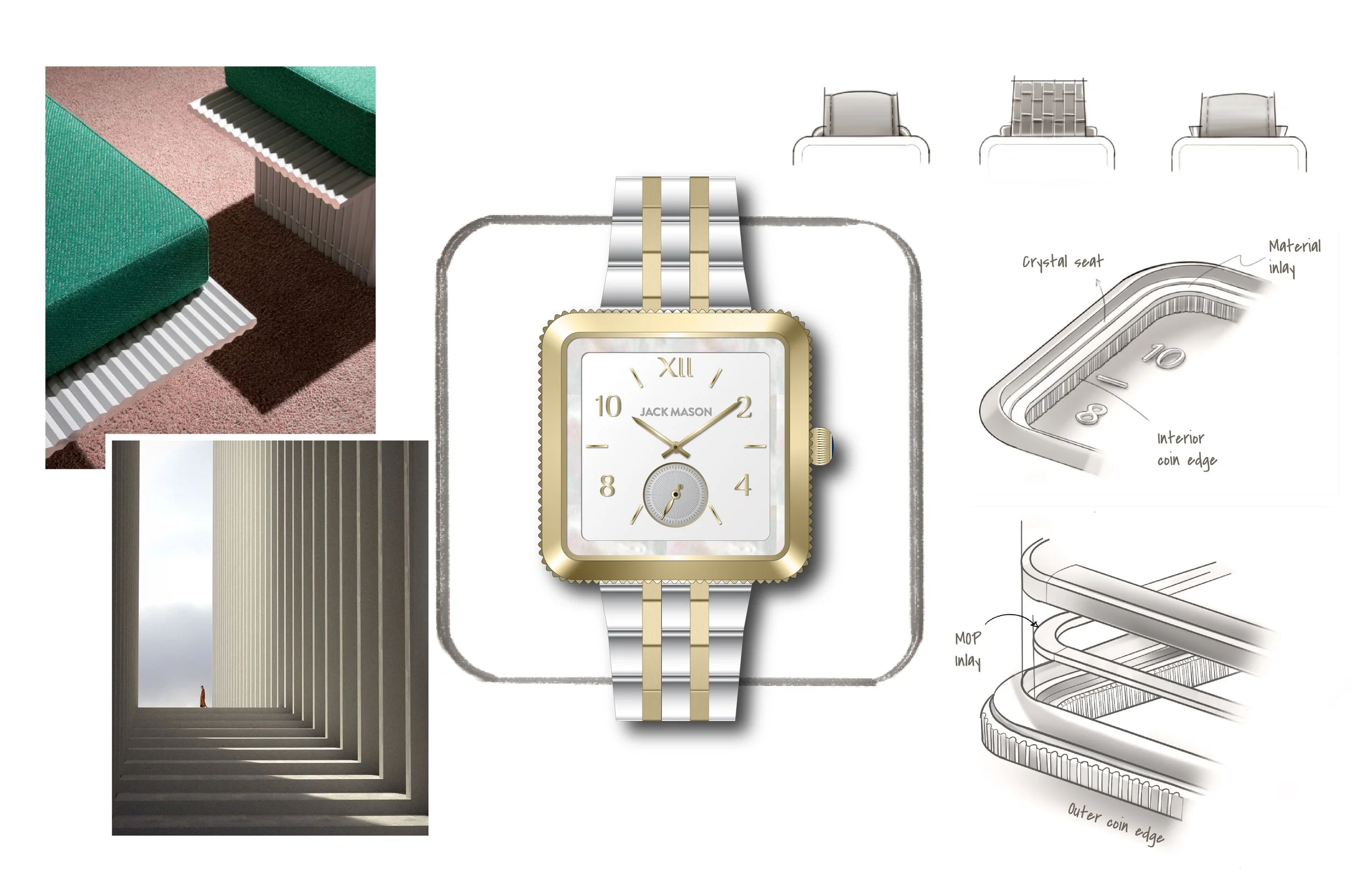 During my time at Jack Mason, a company known for its men’s watches, I led the development of the brand’s first women’s collection. My goal was to define the JM muse and establish a cohesive Visual Brand Language across copy, graphics, product, and packaging. The result was a collection that stood out in the watch industry while staying true to Jack Mason’s DNA.